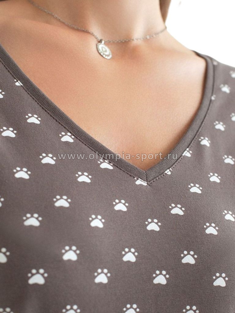 Свободная футболка кофейного цвета с V-вырезом и цельнокроеным рукавом из натурального 100% хлопка создает красивый и легкий образ для дома и отдыха. Дышащая ткань бережно заботится о коже, в то время как декольте с V-вырезом утонченно подчеркивает линию шеи, а свободный крой скрывает возможные недостатки фигуры. Трендовый принт в виде лапок добавляет повседневной футболке оригинальности и актуальности для любой домашней обстановки. Такая футболка отлично подойдет для тех, кто ценит комфорт и стиль одновременно. Благодаря натуральной хлопковой ткани, она идеально подходит для ежедневного использования, обеспечивая чувство легкости и свободы движений. Легкая структура материала поддерживает оптимальный микроклимат, что важно при длительном использовании. Эта футболка женственно смотрится и дарит ощущение уюта, делая ее необходимым элементом домашнего гардероба.