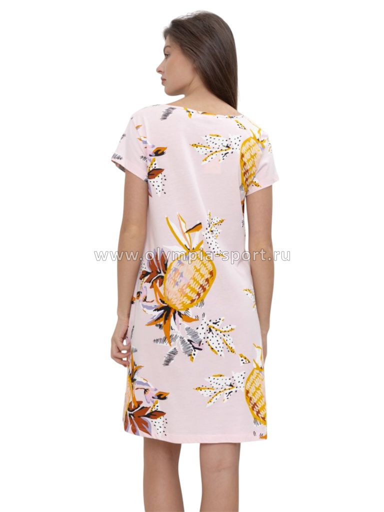 Сорочка-футболка с коротким рукавом свободного прилегания. Вырез горловины круглый, обработан обтачкой из основного полотна.