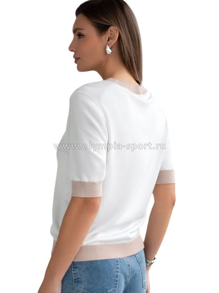 Легкий джемпер белого цвета с круглым вырезом идеально подходит на весну и лето. Тонкая вязка из вискозы дарит приятный комфорт и ощущение свежести в теплую погоду. Полуприлегающий крой подчеркивает силуэт, а универсальная длина позволяет сочетать джемпер с разными элементами гардероба. Контрастная отделка с мягким люрексом добавляет стильный акцент, создавая выразительный образ. Деликатное мерцание придает праздничное настроение, но не выглядит слишком ярко или вызывающе. Такой элемент украшения позволяет носить нарядный джемпер и на особых мероприятиях. Джемпер отлично смотрится на больших размерах благодаря продуманному крою и полуприлегающему фасону. Этот джемпер с коротким рукавом станет незаменимой частью гардероба в сезоны, когда хочется легкости и элегантности одновременно. Лаконичный дизайн обеспечивает простоту комбинирования с другими вещами и будет универсальной базой для создания разнообразных комплектов — от офисного до непринужденного городского стиля.