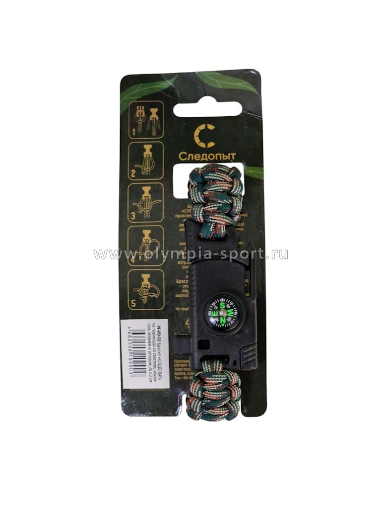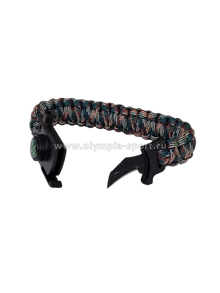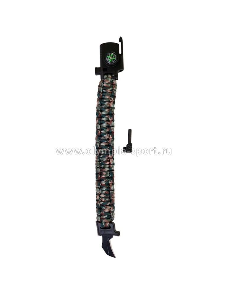 Браслет из паркорда со свистком, компасом, лезвием и огнивом 26*2см